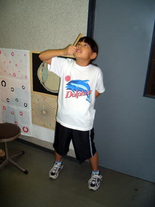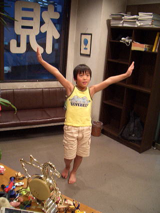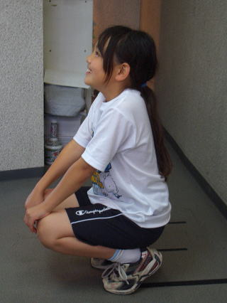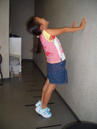 左首目~左肩~左脚に力をつけて左目の力=左視力を改善し、左右均等な身体バランスとなるために『左片足立ちバランス』を行っています。